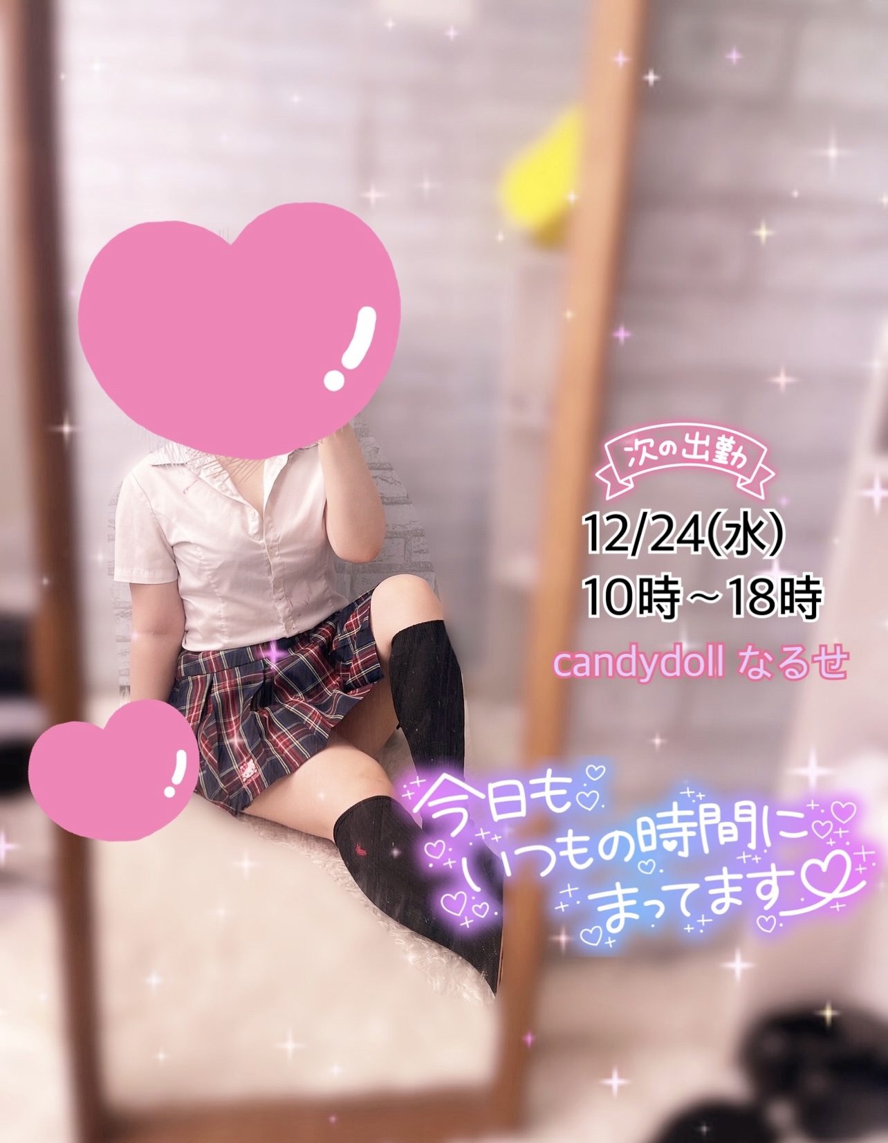 なるせいるよ〜 2025/12/23 12:04:58 こんにちは🌞10時から出勤してます☺︎あっという間にクリスマス近くなってきたね🎅お兄様方はクリスマスどうやって過ごすのかな😌なるせはケーキを食べようかと思ってるよ❣️今日は17:30最終受付です!早番での出勤は年内は今日と明日までなので、早い時間が都合いいお兄様はお早めに💋遊びに来てくれるの待ってます♡